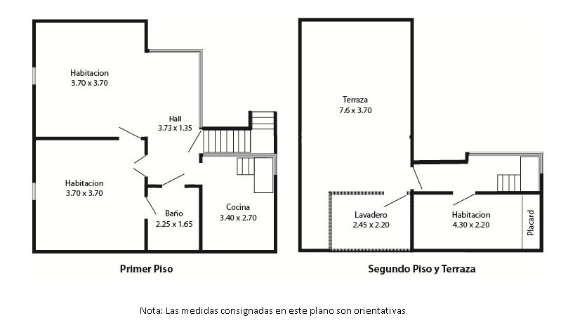 A la segunda planta se accede mediante escalera, en ella se encuentra la segunda habitación con amplio placar, luego llegamos a la amplia terraza que invita a disfrutar el aire libre y que cuenta con un espacio de guardado o lavadero.